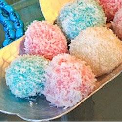 حال يرغب في تلوين الكرات، تضاف بضعة قطرات من ملون الطعام الى العجين